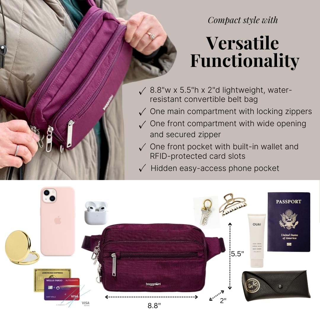 13 reviews for Baggallini Securtex Anti-theft Belt Bag 8.8″x5.5″ Crossbody Fanny Pack for Women RFID Wallet Locking Zipper Travel Purse