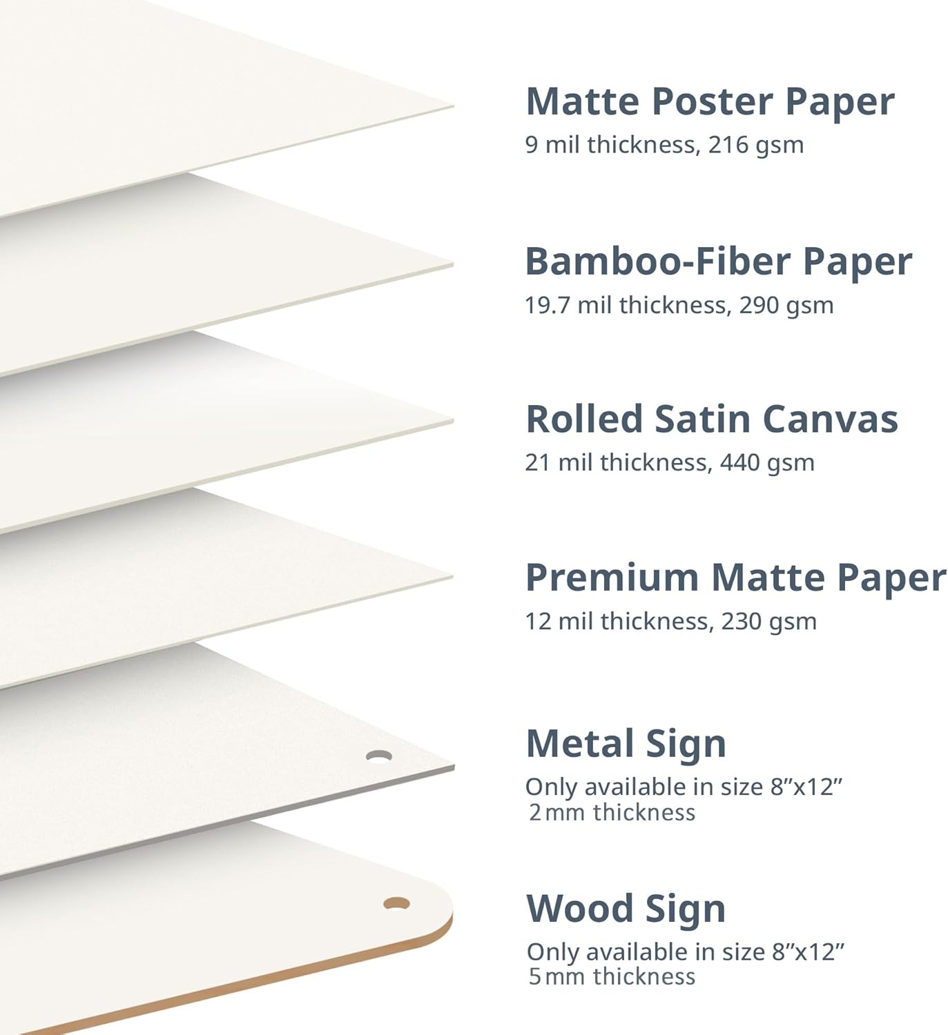 Enhance your space with our stunning wall art decor, meticulously printed on a satin smooth heavyweight paper. With a thickness of 9 mils and a weight of 216 gsm, this paper ensures durability and a rich, vibrant finish that will make any room come alive. Add a touch of elegance and sophistication to your home, office, or any space in need of a visual uplift.