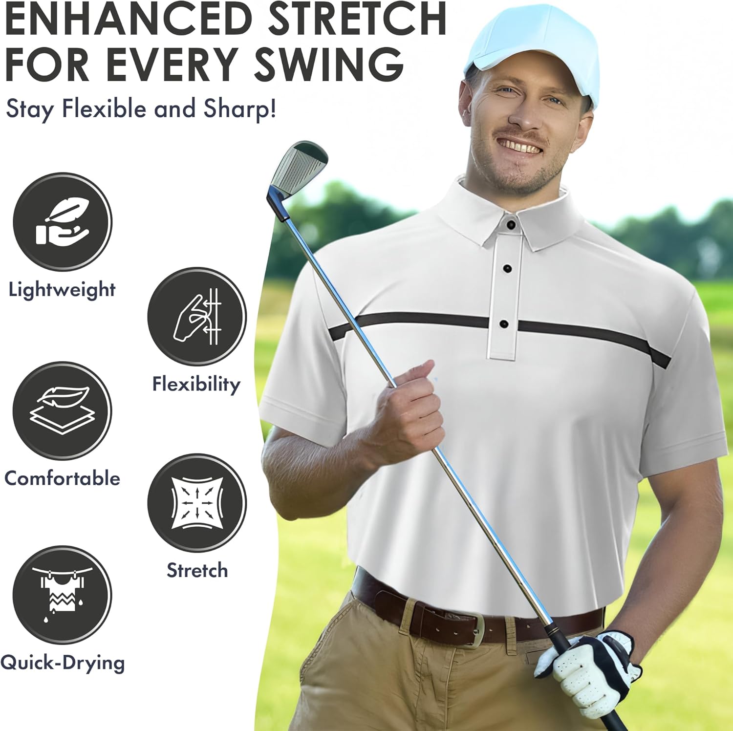 Elevate your game and stay fresh all day with our Men’s Dry Fit Performance Golf Shirts—crafted for serious performance with smart style. These shirts feature advanced moisture-wicking fabric that not only keeps you cool and dry, but also includes built-in UV protection to help shield your skin from harmful sun rays during long rounds under the sun. Lightweight and ultra-breathable, the material allows full freedom of movement, so you can play without restriction. The athletic fit and modern design make it easy to transition from the course to casual settings with effortless style. Whether you’re competing, practicing, or relaxing after a round, this shirt delivers unmatched comfort, durability, and versatility. Designed for performance, protection, and confidence—on the course and beyond.