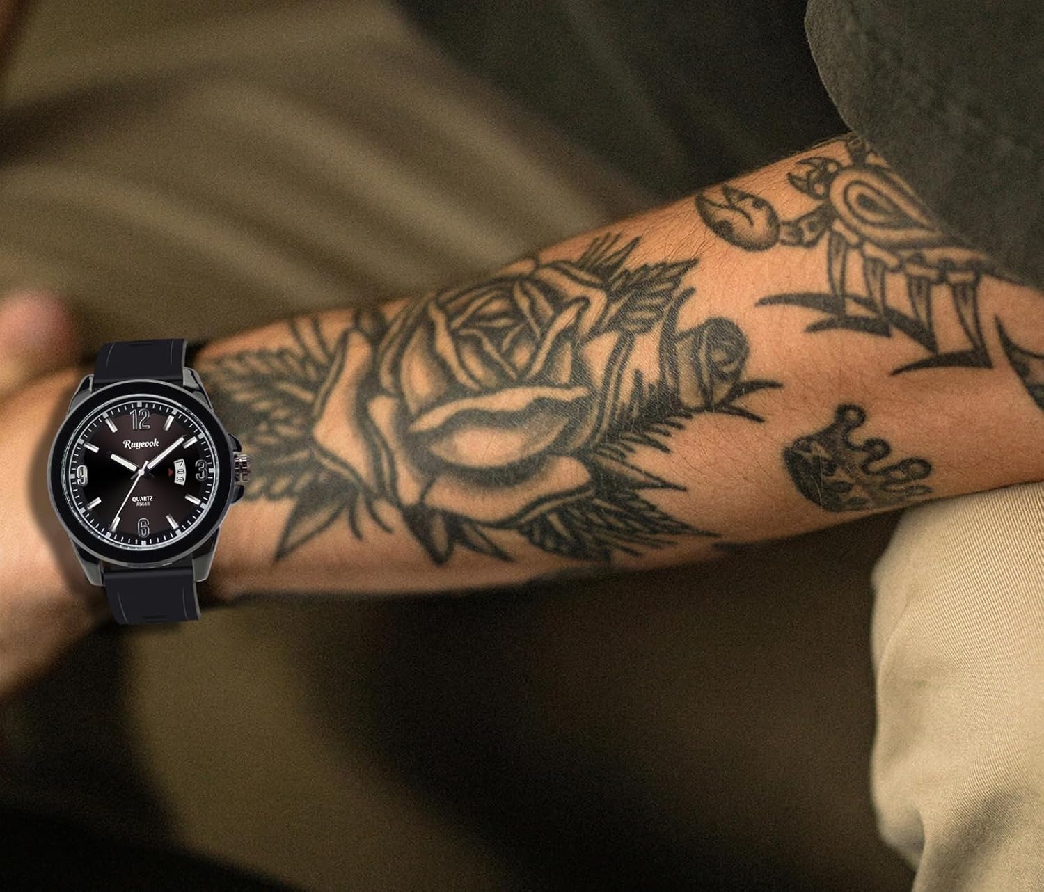 Elevate your wrist game with this sophisticated RUYEOOK quartz watch that seamlessly blends style and functionality. The striking black dial features bold, easy-to-read numerals and luminous markers, complemented by a practical calendar display. Its versatile design transitions smoothly from casual to formal settings, making it an ideal accessory for business meetings or weekend activities. The sleek case design with its polished finish adds a touch of refinement, while the waterproof construction ensures reliability in various conditions. this timepiece combines military-inspired durability with contemporary fashion sensibilities. The reliable quartz movement keeps precise time, while the comfortable rubber strap provides a secure fit for all-day wear.