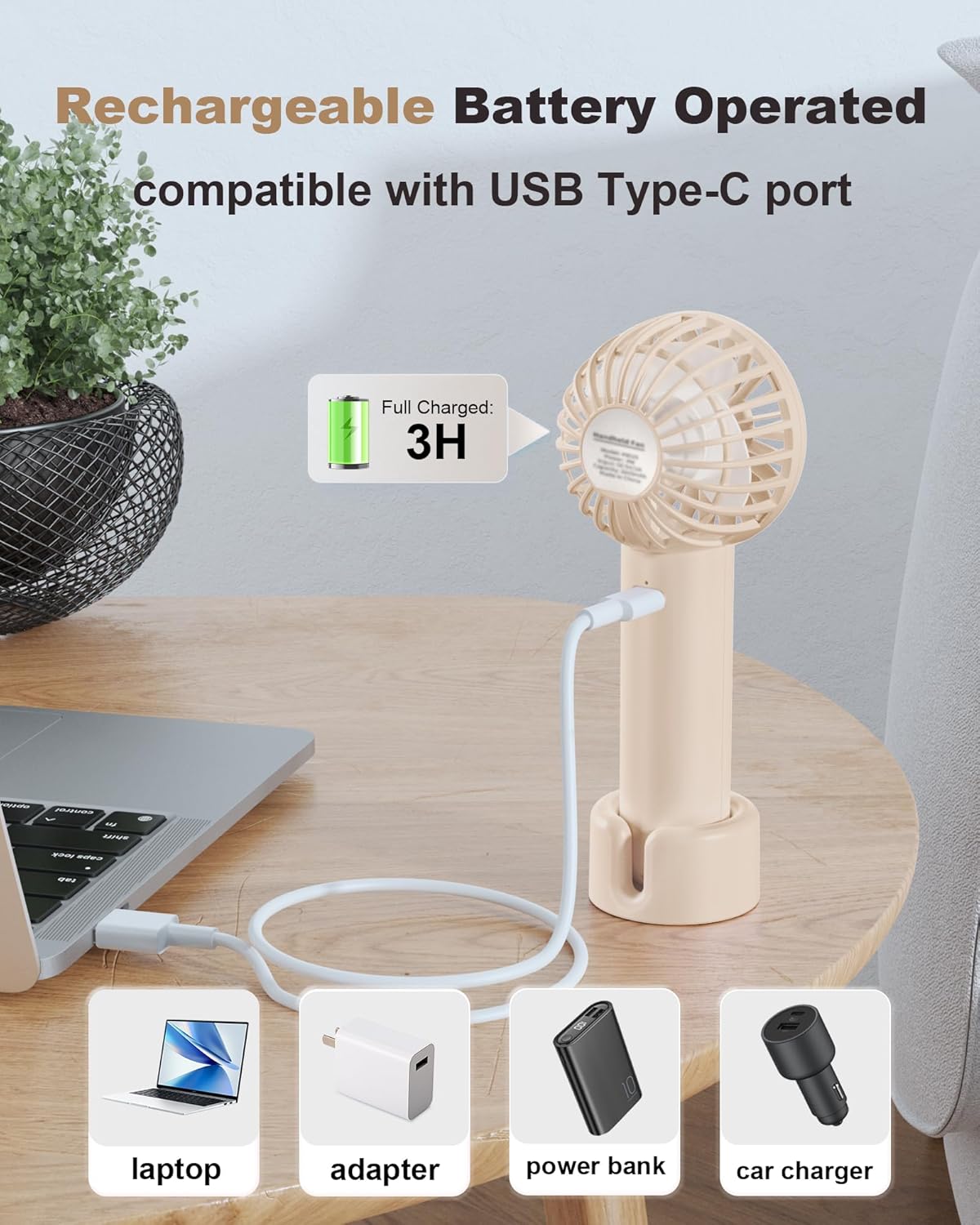Rechargeable Battery Operated: Powered by 2000 mAh battery, the personal fan will be fully charged in 3H and work over 10H. With the included USB Type-C cord, the makeup eyelash fan can be used while being charged via 5V output adapter, laptop etc
