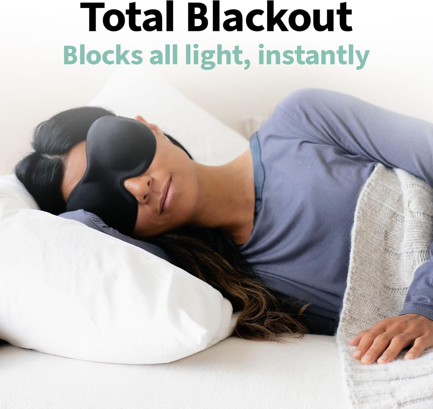 Blackout, Zero Pressure Design: Deep contoured 3D eye cups block all light while relieving eye pressure—perfect for shift work, travel, or midday naps