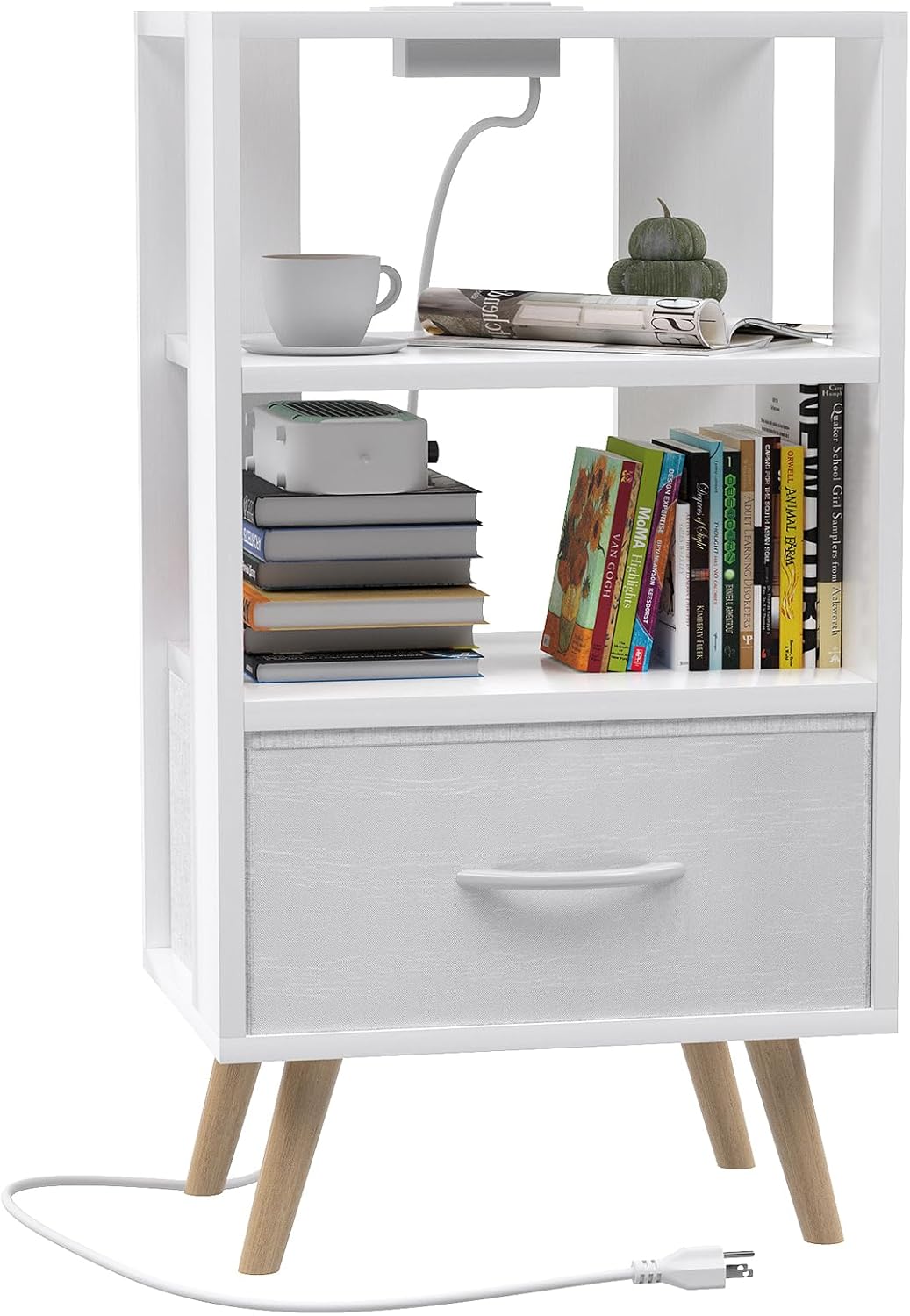 13 reviews for Night Stand with Charging Station, White Kids Nightstand with Drawer, 3-Tier Nursery Bedside Table with USB Ports and Outlets, End Table for Small Space, Living Room, Bedroom