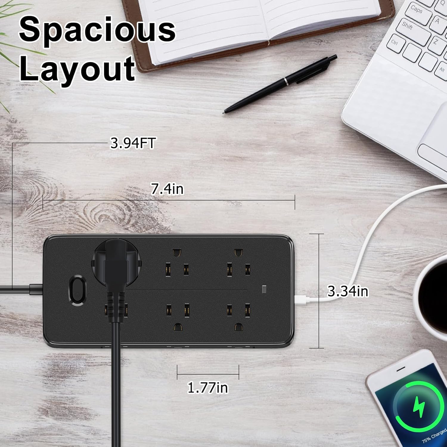 Unique design: the 45° flat plug design, 3.9ft surge protector extension cords with 2 mounting hole locations on the back of the black flat plug power strip can easily installation horizontal or vertical walls or under-desk mounting. The compact design saves more space, suitable for the home, office, and college dorm room essentials.