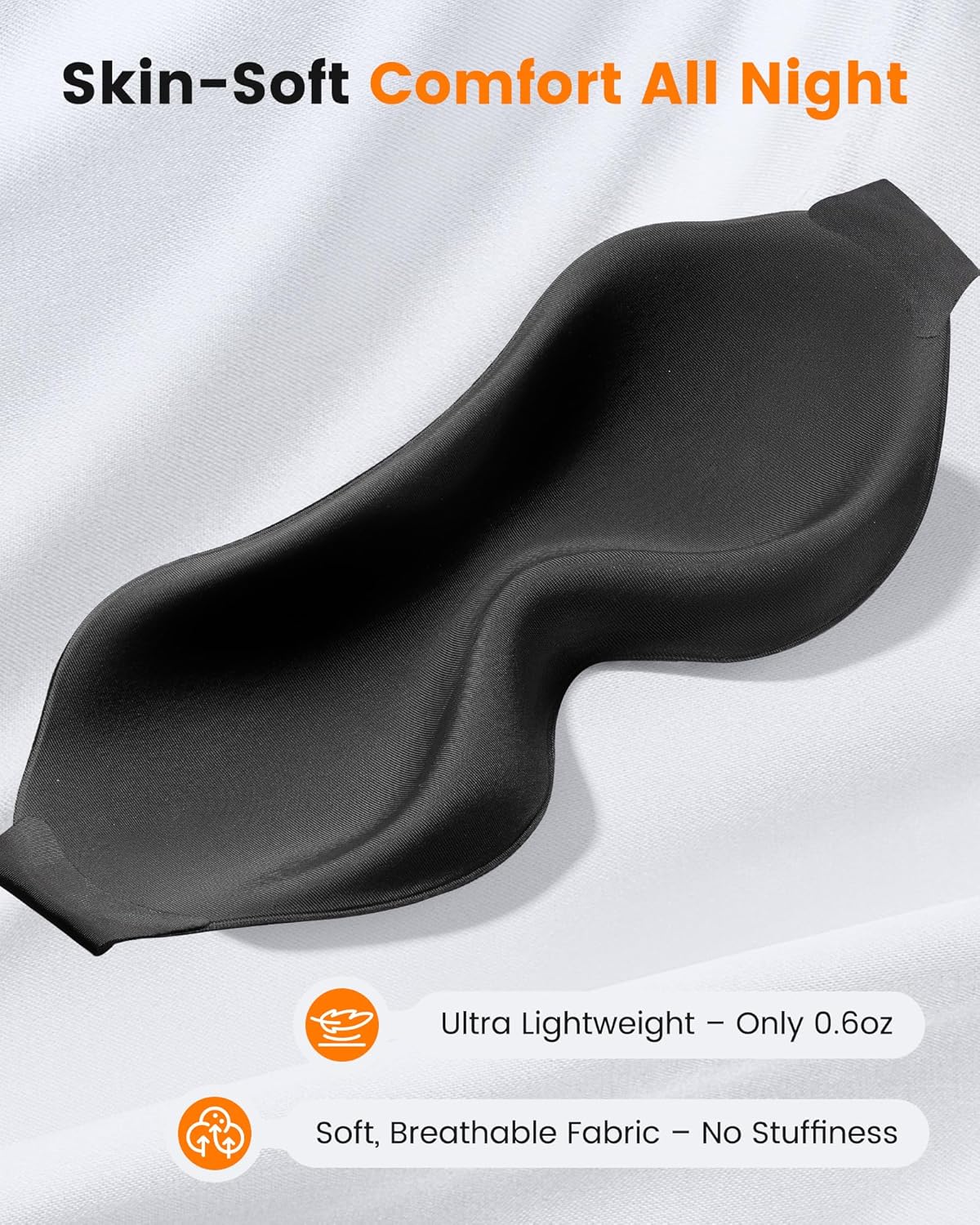 𝗣𝗥𝗘𝗦𝗦𝗨𝗥𝗘-𝗙𝗥𝗘𝗘 𝗖𝗢𝗠𝗙𝗢𝗥𝗧 – 𝗦𝗢𝗙𝗧 𝗠𝗘𝗠𝗢𝗥𝗬 𝗙𝗢𝗔𝗠 𝗔𝗡𝗗 𝗗𝗘𝗘𝗣 𝟯𝗗 𝗘𝗬𝗘 𝗖𝗨𝗣:Our blindfold features a soft, skin-friendly memory foam and a deep 3D contour design that keeps your eyes, nose and face stress-free. The spacious sleep masks for women allows you to blink freely without tight or discomfort. Gentle, breathable, and non-sultry – Great for sensitive skin for a comfortable night.
