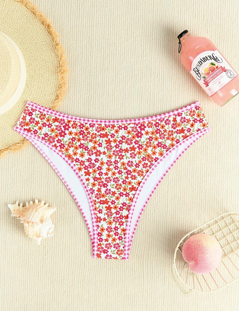 Tainehs Women’s Two Piece Bikini Sets O Ring Front Top Ditsy Floral Triangle Swimsuits Cheeky Bathing Suit