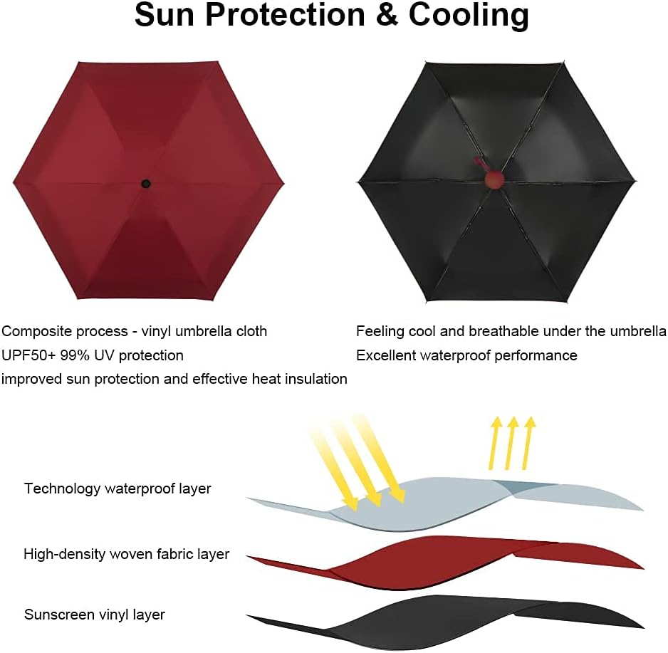 In the hot summer, a mini umbrella can protect your skin from sunburn. If it rains, the umbrella will also protect you from getting wet.