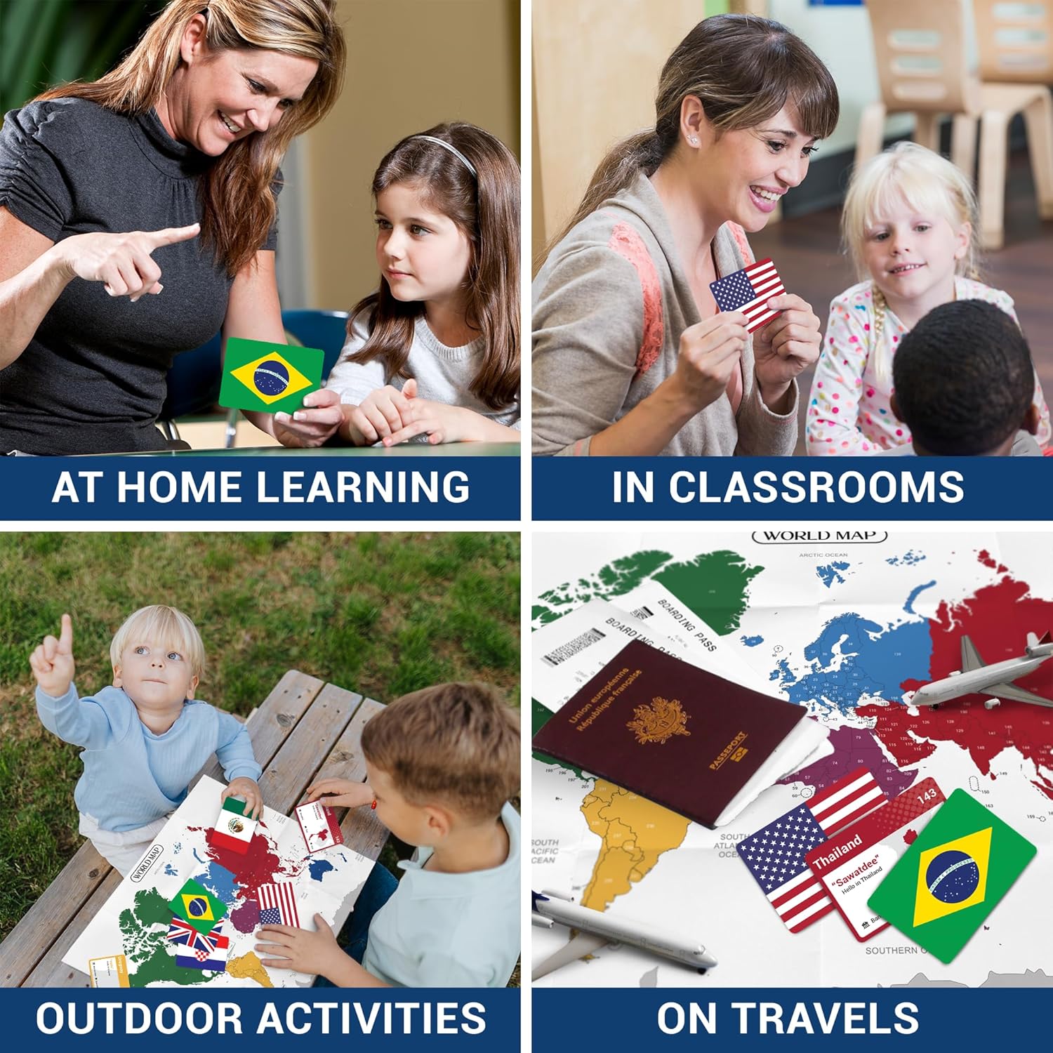 BLEND OF LEARNING AND FUN: Designed to combine education and entertainment, this card set doubles as an interactive geography game like quizzes, flag matching, continent hunts, and more. Ideal for classrooms, homeschooling, or anywhere. Turn geography into fun while building skills, nurturing memory, hand-eye coordination, sparking curiosity, and fostering cultural awareness for all ages.