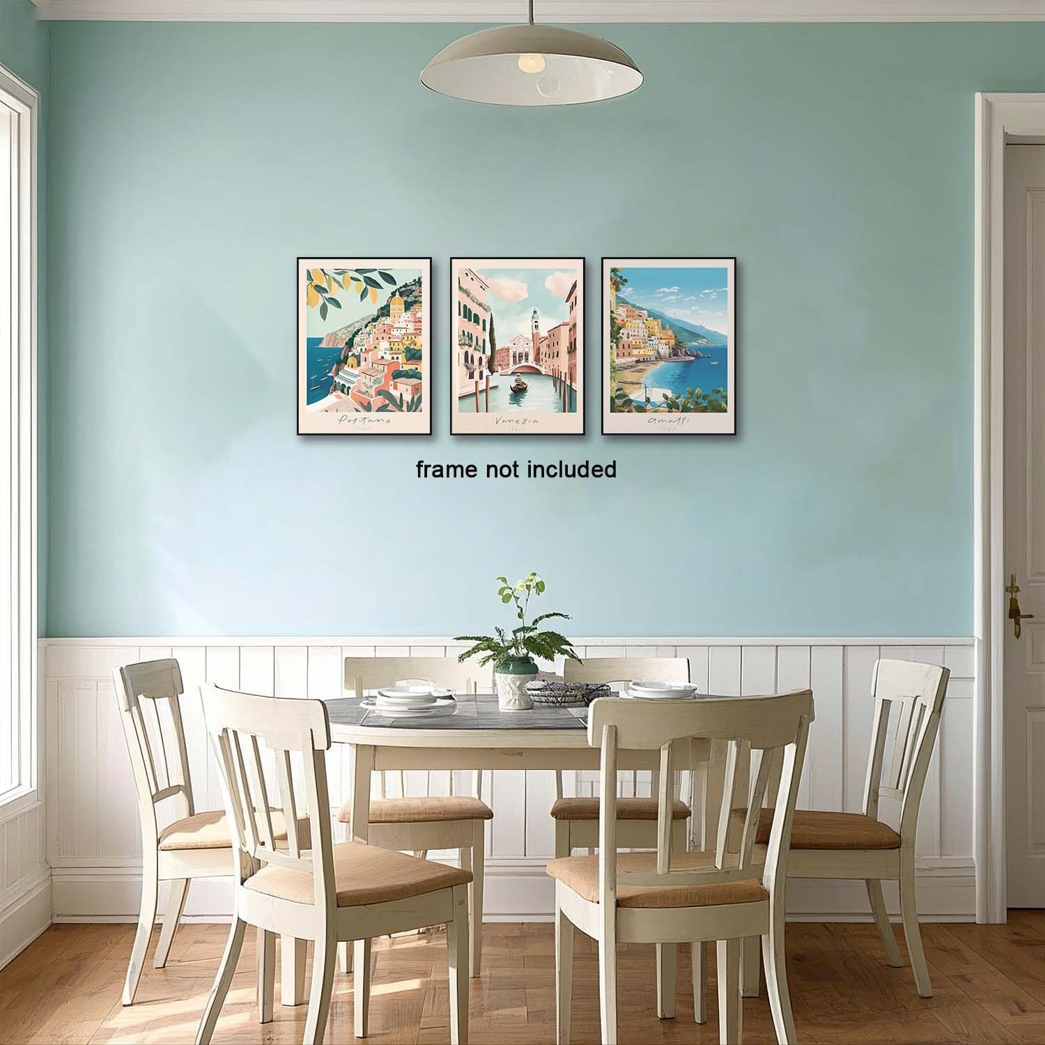 Ideal for Living Rooms, Bedrooms, and Offices These Amalfi Coast travel posters fit beautifully in a variety of spaces, from the modern living room to the relaxed bedroom or the inspiring office. Their calming coastal imagery adds a tranquil yet stylish atmosphere to any room, making them a perfect choice for those who love beach and coastal decor.